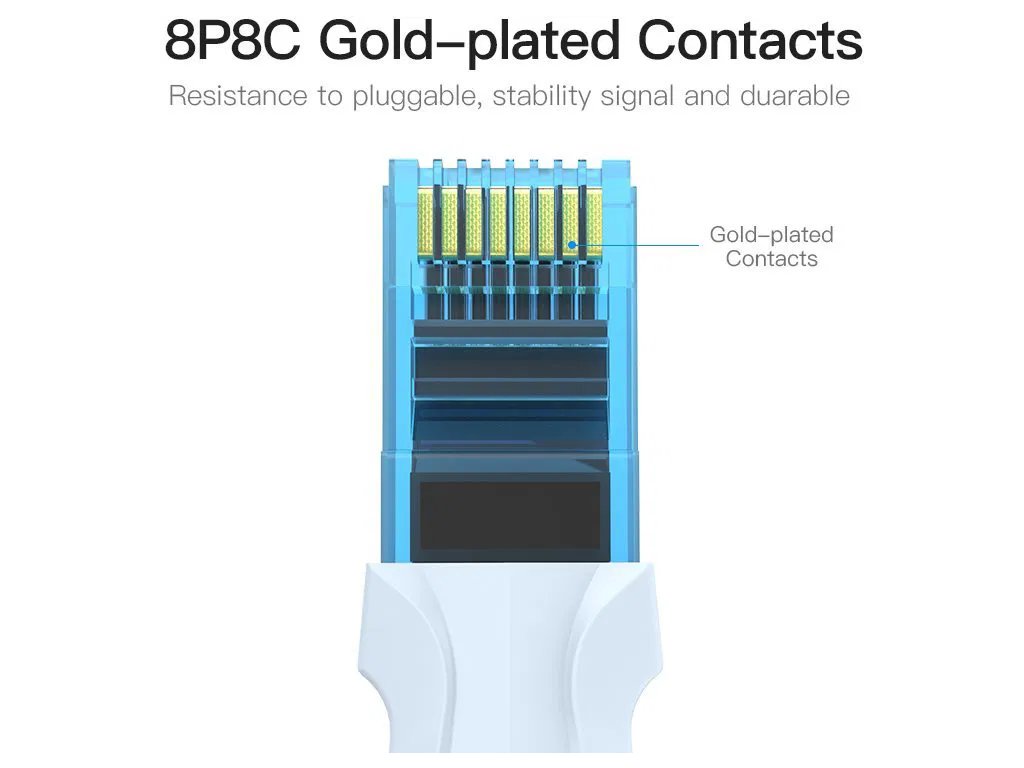 - Sieťový kábel Vention je opatrený konektormi male RJ-45